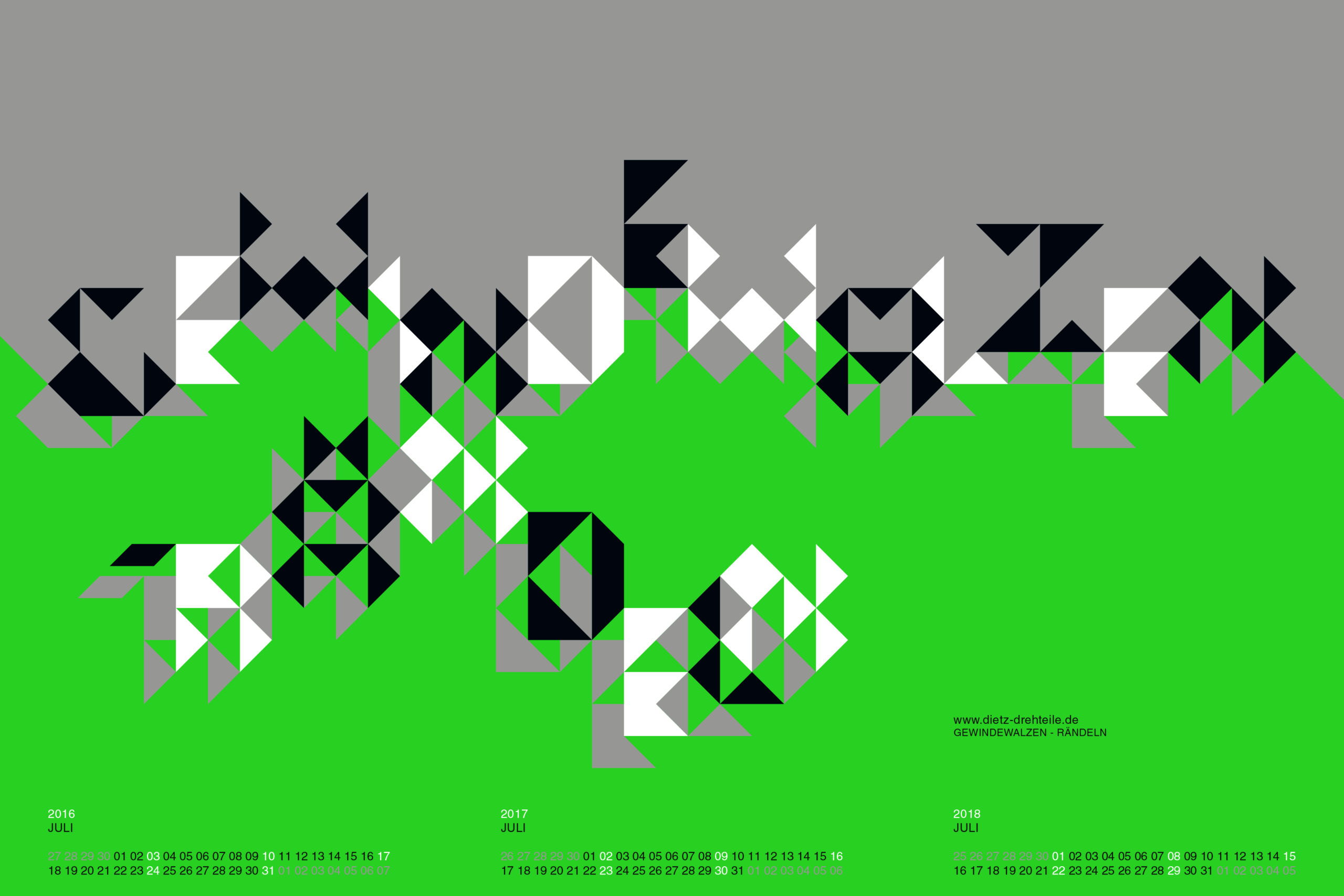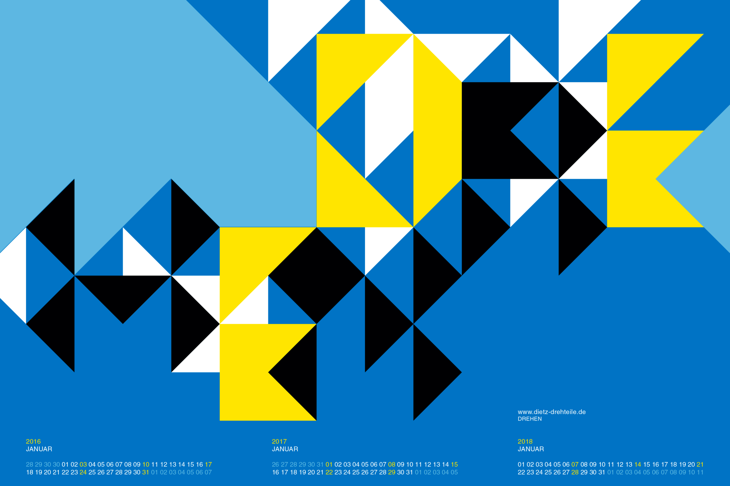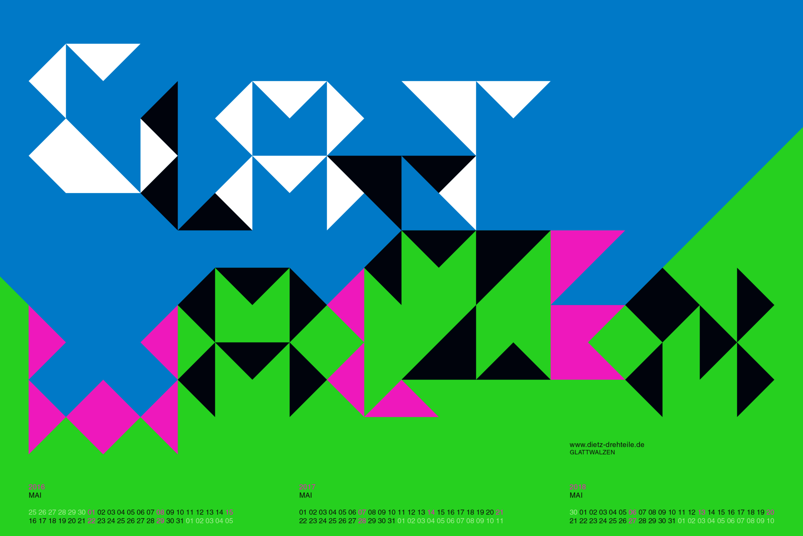 Wandkalender für einen meiner langjährigen Kunden im Format DIN A1. Umgesetzt mit 4 Tageslicht Sonderfarben + Schwarz im Offset Druck.