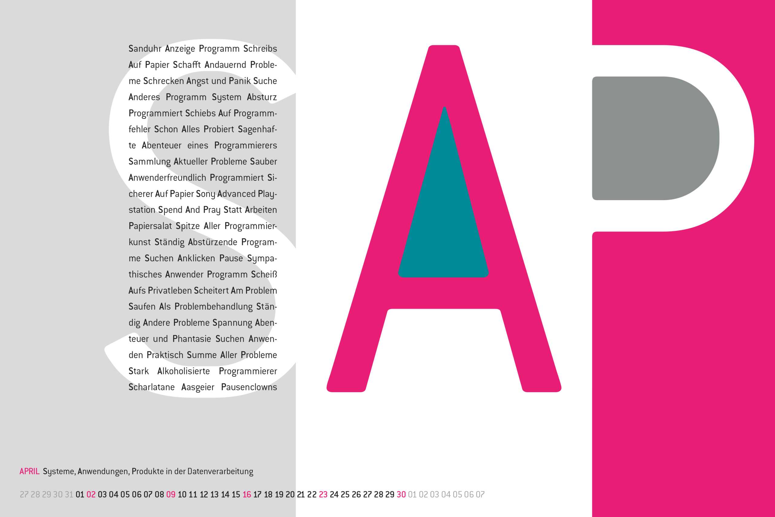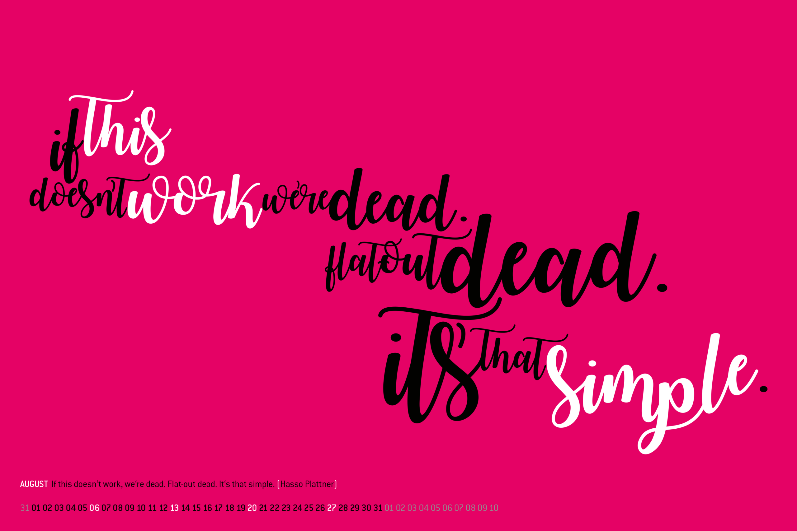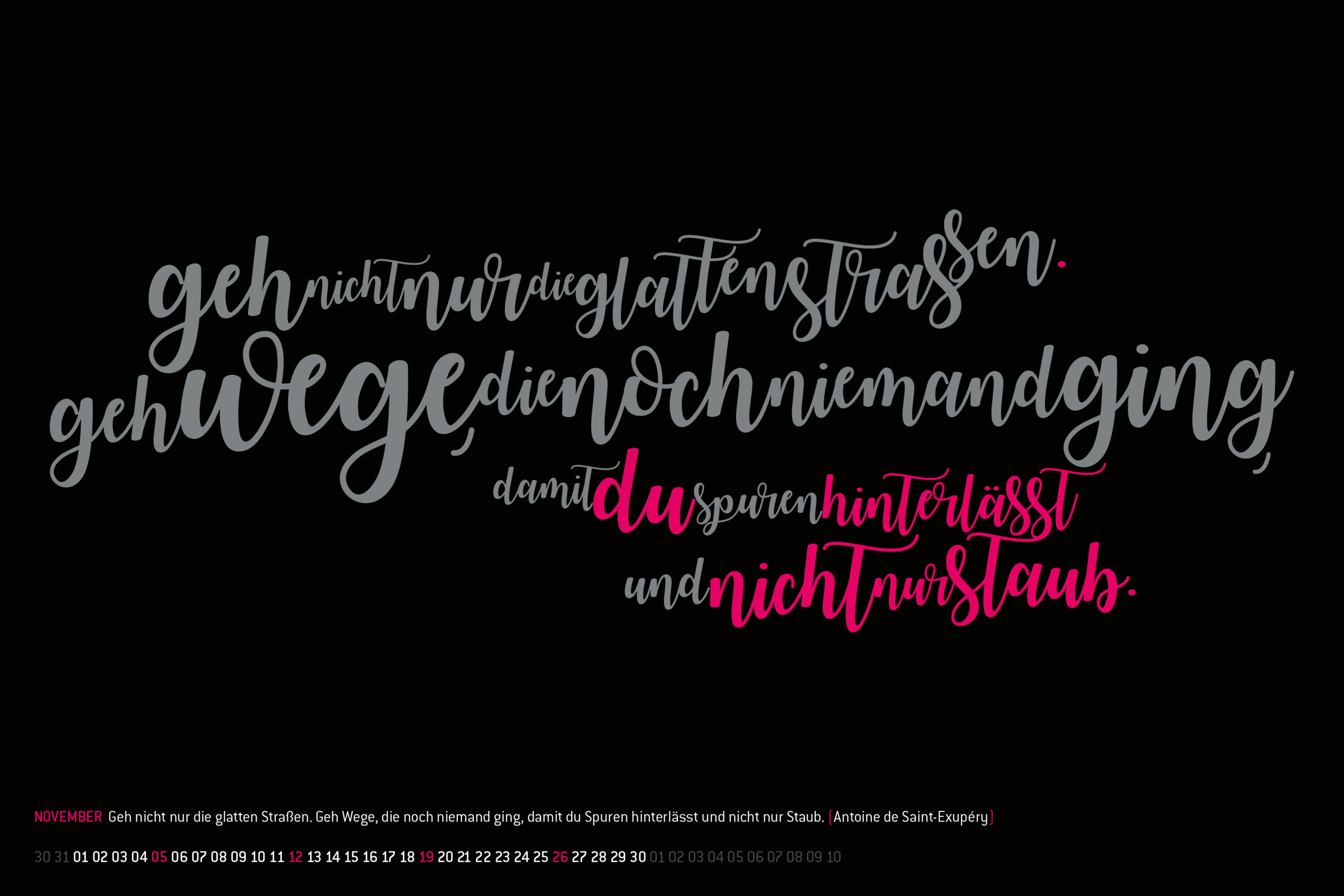 Wandkalender für einen meiner langjährigen Kunden im Format DIN A1. Umgesetzt mit 4 Tageslicht Sonderfarben + Schwarz im Offset Druck.